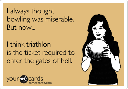 Anyone who has read my blog knows of my innate tendency to mentally defeat myself.  I am working through this big-time with triathlon.  Even though this swim experience was like a slice and dice to my heart, something in me has changed.   Five years ago, I would have declared this experience something I “can’t do” and scream “F it” and quit.  “Guess I’ll never be able to do an open water triathlon.  Guess I’m a loser. Guess that’s it.”  While I was panicking in the water, I was batting around these thoughts.