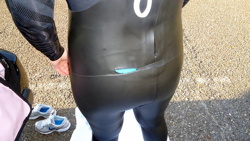 Oh for the love.  I’m not mad. I’m horror stricken, thinking of tales I have heard of wetsuits being filled with water, followed by sinking.  Fortunately, my suit fits like a spray-on tan, so I am not too worried about it. (Panic #1).