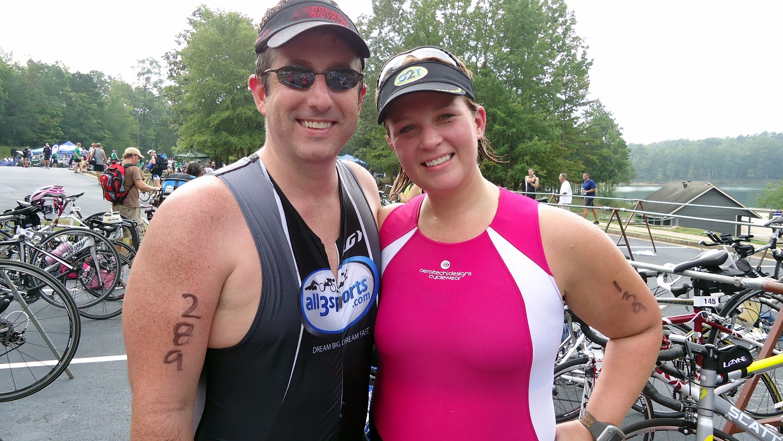 It’s 6:40am.  And we have 9.9 miles to drive.  9.9 miles. And transition closes at 7:00.  Did I mention that we didn’t have our race packets or timing chips or anything yet?